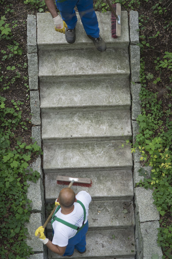 Schon etwas aus der Zeit gefallen ist dieser Wohnwagen, genauso wie sein Standort, die Floriansmühlstrasse mit ihrem schon seit vielen Jahren stillgelegten Eisbach-Freibad hinter dem Bretterzaun, mitsamt Originalschildern und Einstiegshilfen, vom Gras überwuchert. Das Dach festgezurrt mit blauen Gurten, damit es nicht wegfliegt, und eine Doppellage Gardinen schirmt den Blick ins Innere ab.