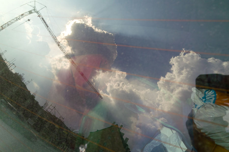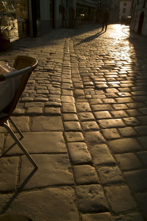 Da hat sich der Fußmarsch bergauf in Begleitung der Tochter gelohnt, denn in den Haarnadelkurven man kann mit dem Auto nicht einfach anhalten, um ein Bild zu machen. Am Straßenrand entlang gehend hat man die Muße darauf zu achten, dass das Kreuz auf dem Glockenturm noch im Format sitzt, ebenso der Fensterbogen unten im Anschnitt.