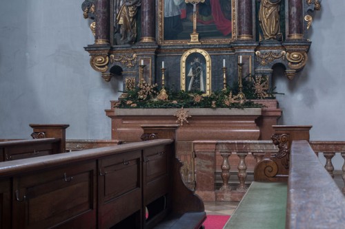 Die beiden Kirchtürme gelten als die am feinsten verzierten Kirchtürme des Landkreises. Besonders schön anzusehen sind die Strukturen im unteren Bereich, die den Türmen ihre einzigartige Gestalt geben. Auch aus der Entfernung gut zu erkennen sind die gotischen Einflüsse an der gesamten Front und besonders am Portikus. Sehr selten ist auch die Ausstattung mit zwei Turmuhren, von denen jede eine andere Zeit anzeigt (katholisch und evangelisch). Eine Augenweide!