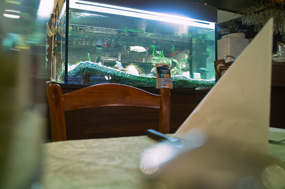 Kunstlicht färbte bereits den Abend. Mir war ganz leicht ein wenig schlecht. Segel gesetzt. Die Fische schon bald schneller, als das Licht erlaubt – nun mußte wohl Farbe bekannt werden. Zahlen, bitte!