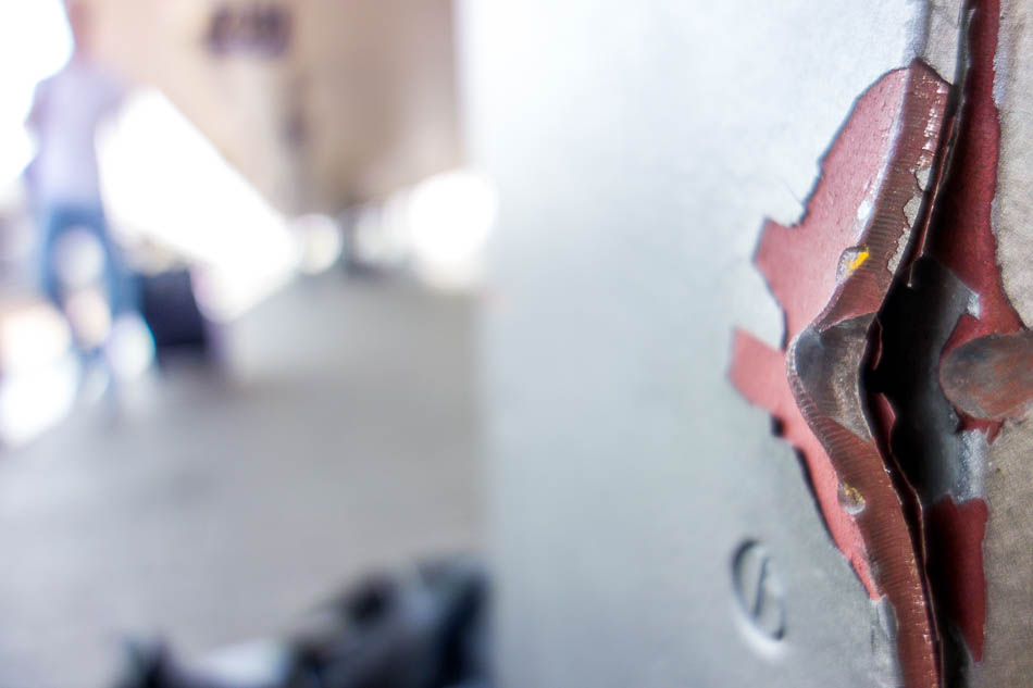 Vorne klafft geborst’ner Stahl ein großes Stück weit,