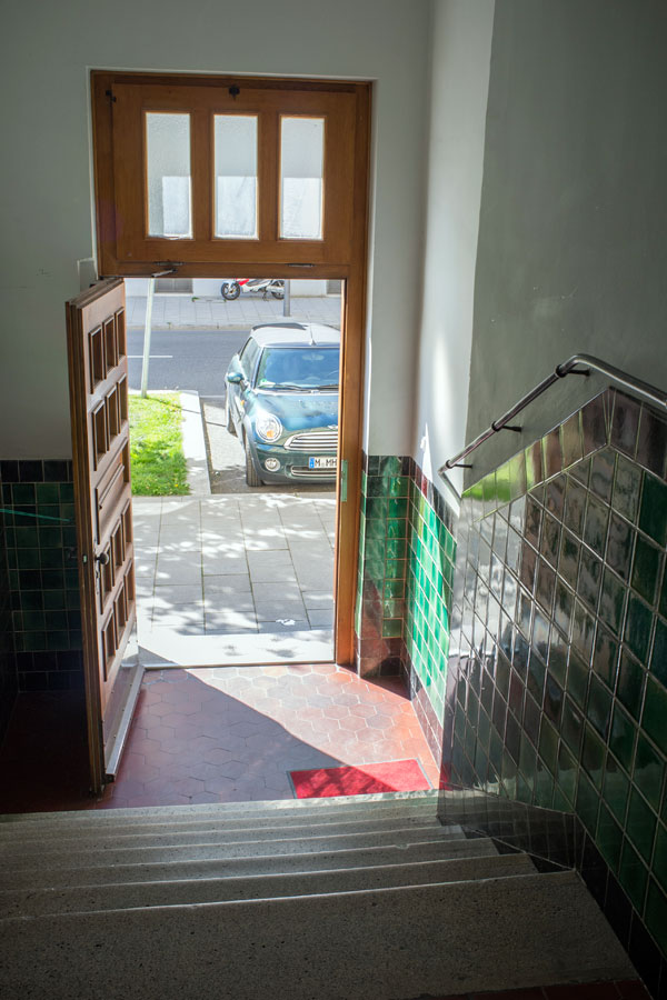 Was ich noch sagen wollte: Ich stehe voll auf das Lichtgeflirre auf Fußboden und den Flaschengrünfliesen. Wird einem ja ganz schwummerig von …