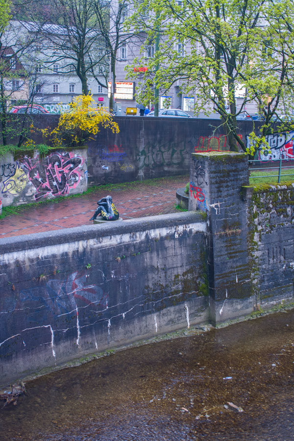 2. Ein sehr regnerischer Abend an der Isar, graue Stunde.