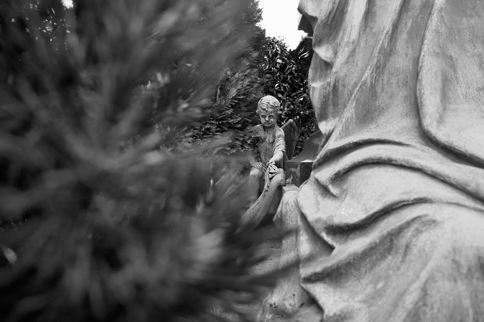 Ein überhängendes Fronleichnamsmotiv ist dies.Mein Spaziergang führte mich wie so oft zum Abschluss über den alten katholischen Friedhof. Dabei sprang nicht nur die ein oder andere schöne Motivreihe-Idee raus, sondern auch dieses postkartenständerwürdige Putt-Putt-Putt-Motiv. Das Engelchen ist etwas nachgeschärft von wegen der Bildkonzentration.