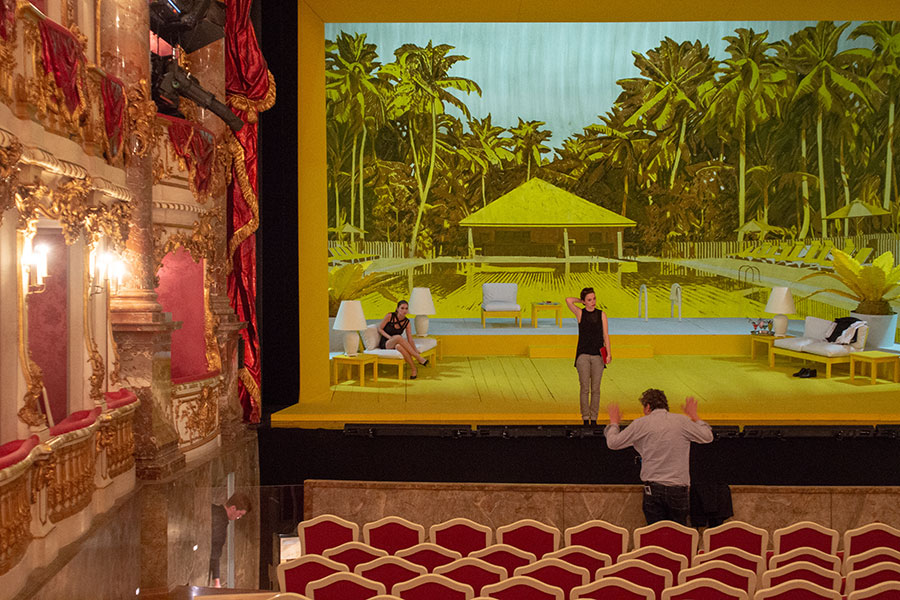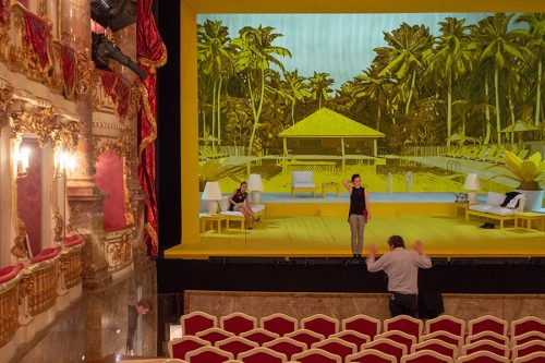 Das Cuvlliéstheater in München, Herr Stückl gibt letzte Anweisungen zu „Mirandolina“.
