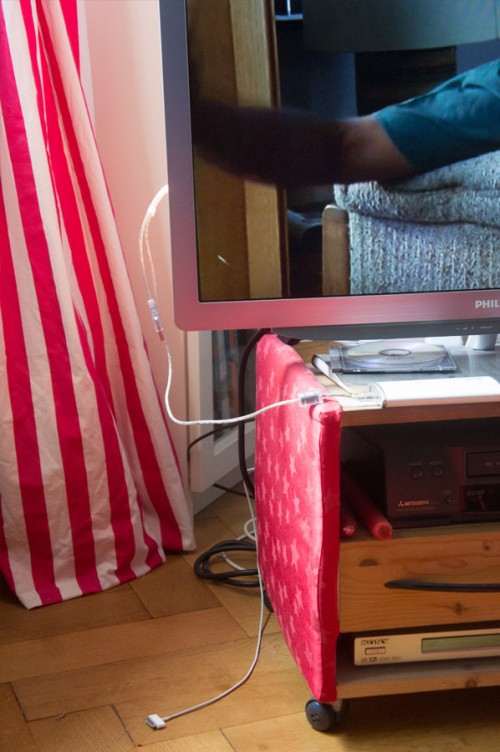 Schau, wie das Kabel da hängt.