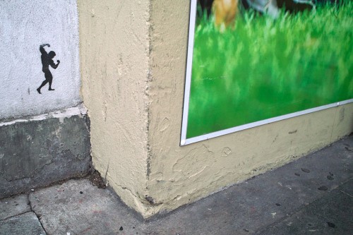Hey, kleiner Fratz auf der Gehsteigwand: