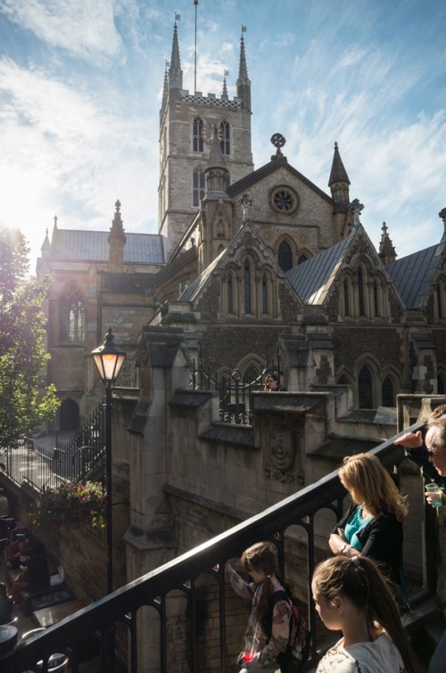 Welch dicht gepacktes Motiv. Wie richtig das alles ist: Eine Legoland-Kirche, ein Postkarten-Himmel, ein künstliches Filmstudio-Licht – und alle Komparsen schauen andächtig auf eine Marienerscheinung, die mal wieder als einziges nicht im Bild ist, zefix!