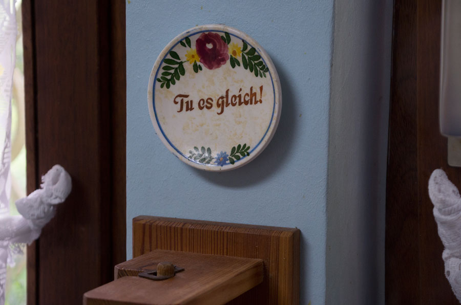 1. Ausweislich des Bildnamens befinden wir uns mit diesem Motiv ja nicht mehr in London, sondern in niederrheinischen Poesiealbum-Gefilden. „Tu es gleich!“ heißt es: Und ich rätsel noch, ob ich es nun sofort tun soll, also unverzüglich und ohne weiteren Zweifel – oder aber ,ob ich dem/der Anderen auf vergleichbare Art/Weise begegnen soll, wie er/sie mir. Solange das nicht entschieden ist, erschrecke ich mich noch ein wenig über die gerollten Stoffwürste, die ins Bild hineindrängeln, wie Gasgranaten in den Gezi-Park.
