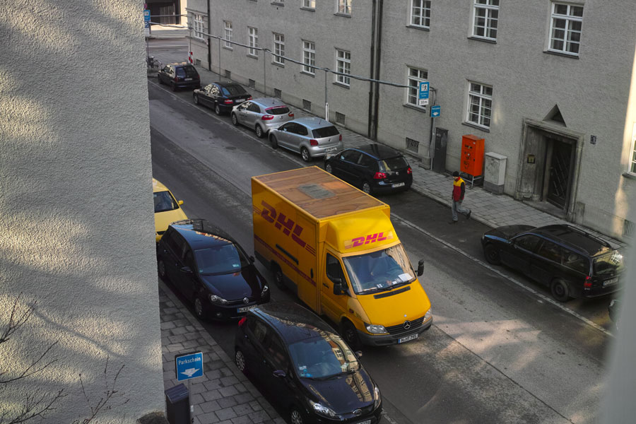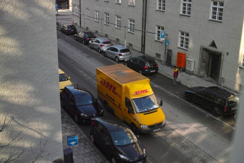 1. Und: Wunderbar! Ich hätte der Versuchung kaum widerstanden, das hellgelbe Auto links zu entfärben, um die Farbe noch mehr wirken zu lassen. Blauweiße Geschichten in Gelbrot – superb!