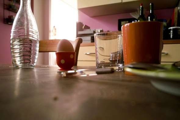 Um die Reihe von Abbildungen törichter Dinge etwas auszubauen, zeige ich hier die Kindersitzstelle einer befremdlich guten jedoch miserabel gelegenen Eisdiele, bei deren Tisch-Platzierung man sehr genau darauf geachtet hat, dass die Schlumpfeisfresser auf dem Weg zur Toilette aber sowas von im Weg sitzen müssen und überall das verstreuen können, was man heutzutage unter hilflosem Grinsen der Eltern aufs Eis sich machen lässt (keine Selbstbedienung!), also: Smarties, Streusel und Mini-Marshmellows. »Selber Mini-Marshmellow!«